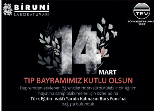 Biruni Laboratuvarı Ailesi olarak tüm paydaşlarımız adına, depremden etkilenen öğrencilerimizin sürdürülebilir bir eğitim hayatına sahip olabilmeleri için Türk Eğitim Vakfı’nın yürüttüğü “Yarıda Kalmasın Burs Fonu” projesine destekte bulunduk.