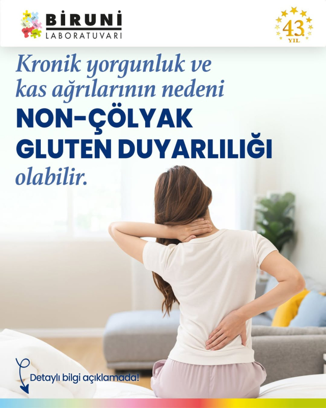 Karın ağrısı, şişkinlik, gaz, kronik yorgunluk, kas ağrıları Non-Çölyak (Çölyak Olmayan) Gluten Duyarlılığının en sık karşılaşılan bulgularıdır.