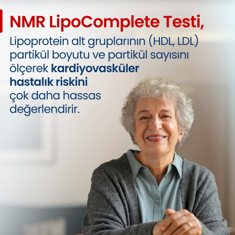 NMR LipoComplete Testi, ileri bir analitik teknik ile lipoprotein altgruplarının partikül çapı ve partikül boyutunu tanımlar.